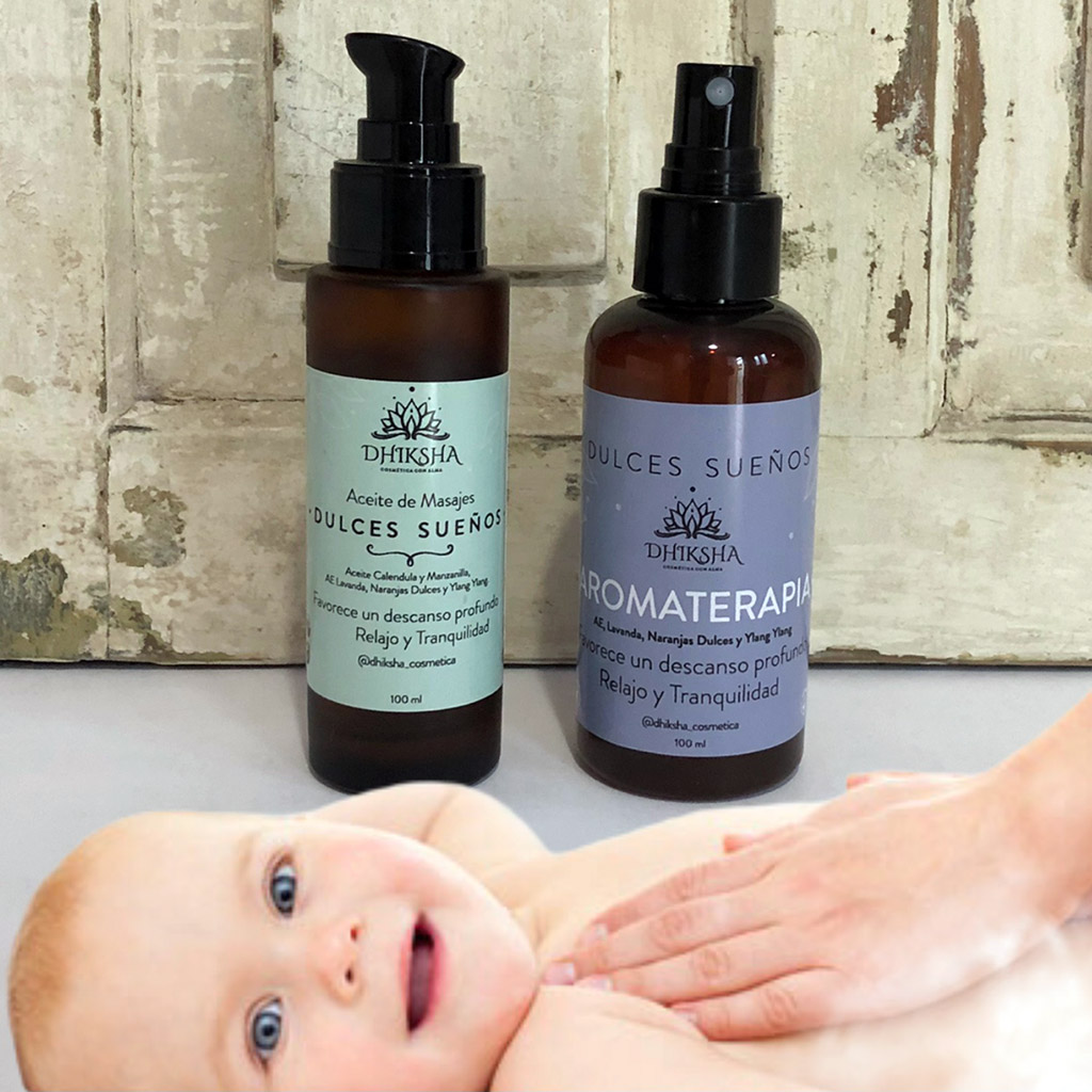 El Aceite de masajes Caléndula y Manzanilla es una perfecta combinación 100% natural, elaborado con propiedades que te ayudaran a relajar a tu bebe, evitar el cólico del lactante y nutrir e hidratar la piel de tu bebe. El spray Aromaterapia cuenta con principios activos extraídos de la naturaleza que te ayudan a propiciar un ambiente de relajo y tranquilidad en tu hogar, ideal para un descanso profundo en los brazos de Morfeo.